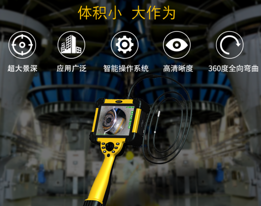微視WS-Y系列360°任意向高清數碼工業內窺鏡采用國際領先機械式操作桿技術,可實現探頭360°全方位旋轉,任何復雜的檢測環境都可對應,并且產品防油、防水、防腐蝕等設計,無論是在水下,還是管道都可以體現出其檢測功能的卓越;產品小巧便攜,集拍照、錄像等功能于一體;并且兼備拍照,調節亮度,使被測物更清晰呈現;數據存儲簡單方便多種方式選擇,聲音記錄,通過音頻進行檢測部位的注釋等功能于一體,是當今工業內窺鏡檢測行業中獨樹一幟的搞斷產品!微視WS-Y系列工業內窺鏡采用IP7防水標準設計,鏡頭外殼采用不銹鋼;在管道中進行檢測,在環境比較黑暗或光線不足的地方,微了解決這個問題,微視WS-Y系列工業內窺鏡探頭采用行業內獨特的光纖傳輸照明,8節亮度調節,并且采用高分辨工業級液晶顯示器實時觀察內部情況;圖像清晰、操作簡單、有效探測距離長、使用范圍廣、并且可以和電腦、平板等連接實現存儲的優點。
