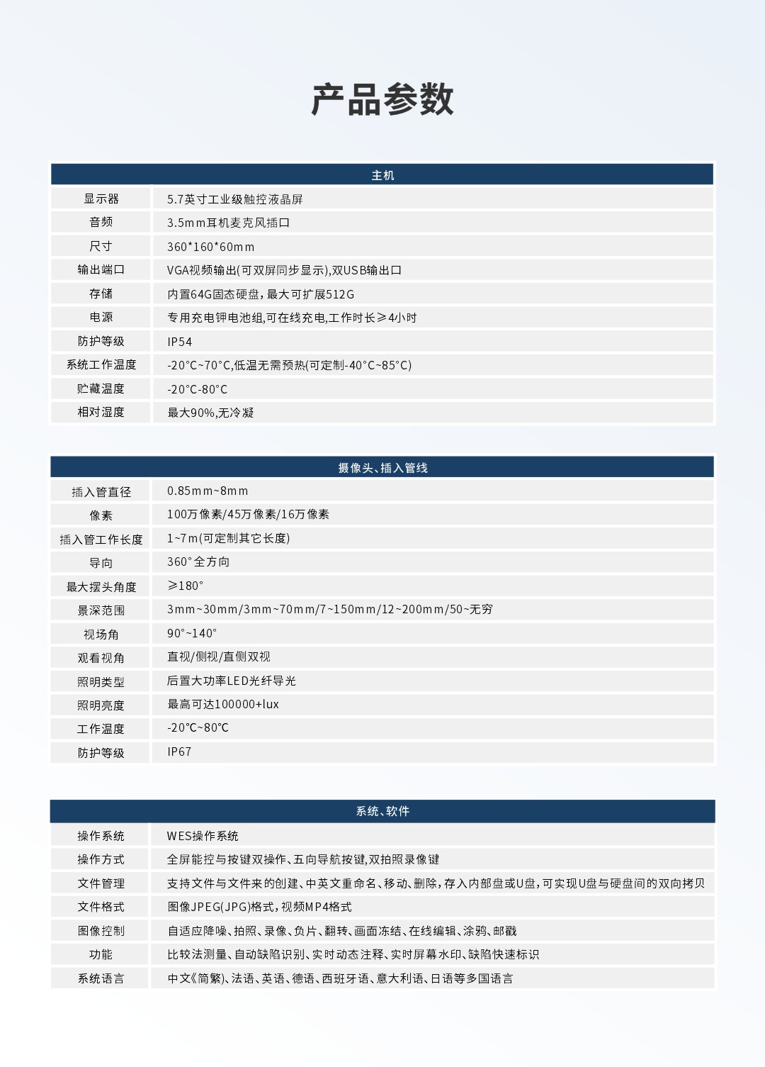 探頭彎曲角度:360°全方位