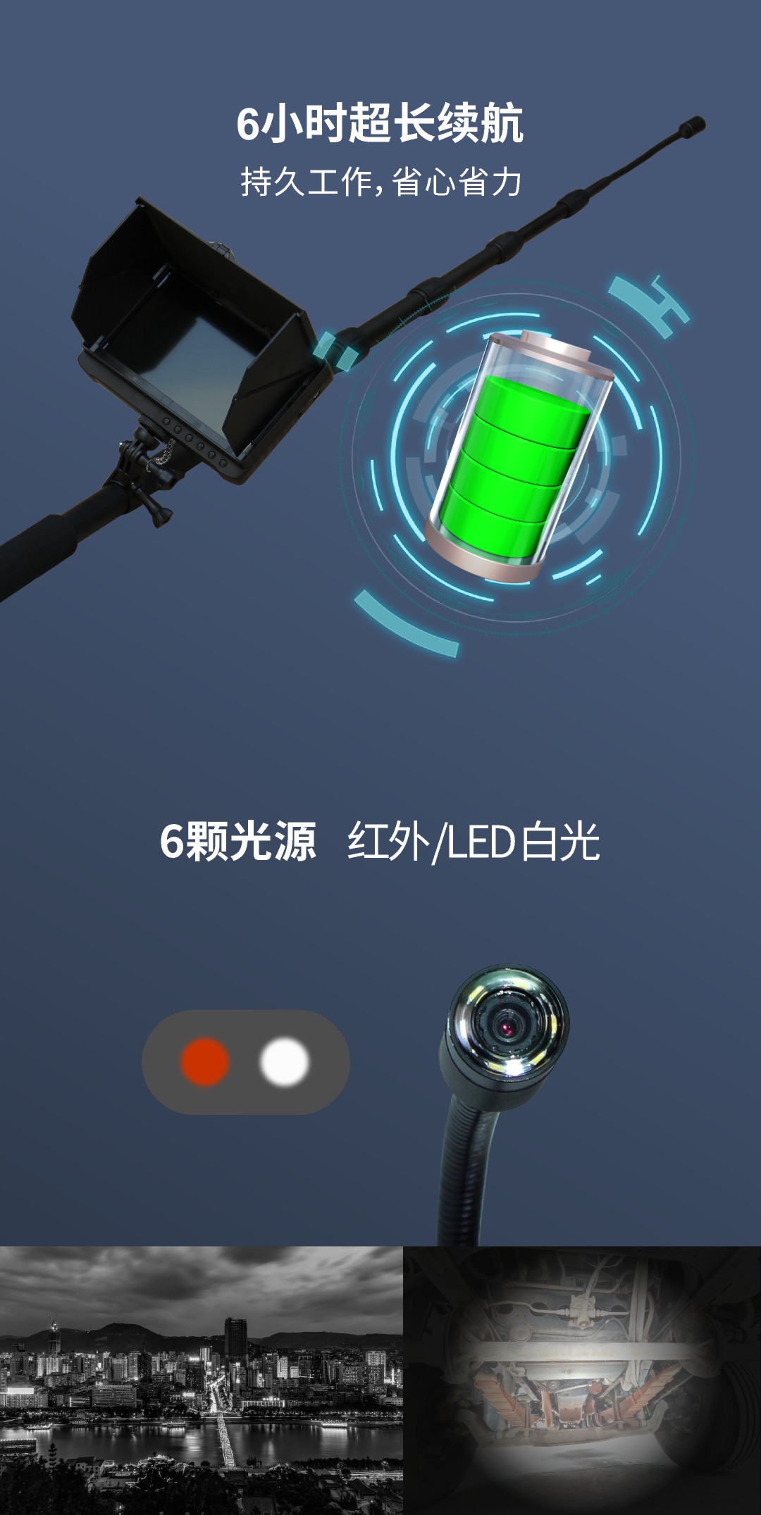 優勢特點:500萬像素;5米可伸縮調節桿;高空檢查專用